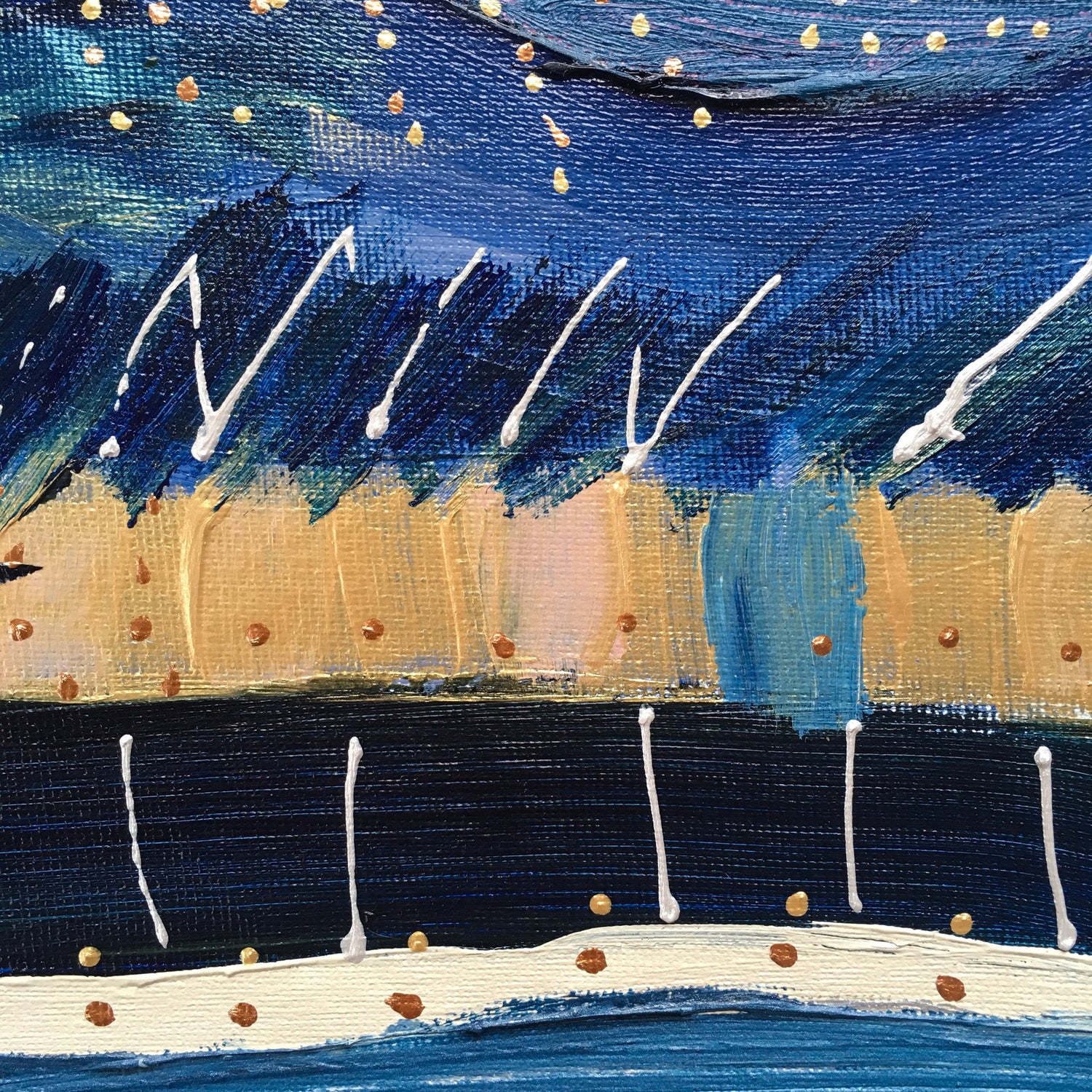 "Powder + Navy" is an original acrylic on canvas painting. Opposites attract...