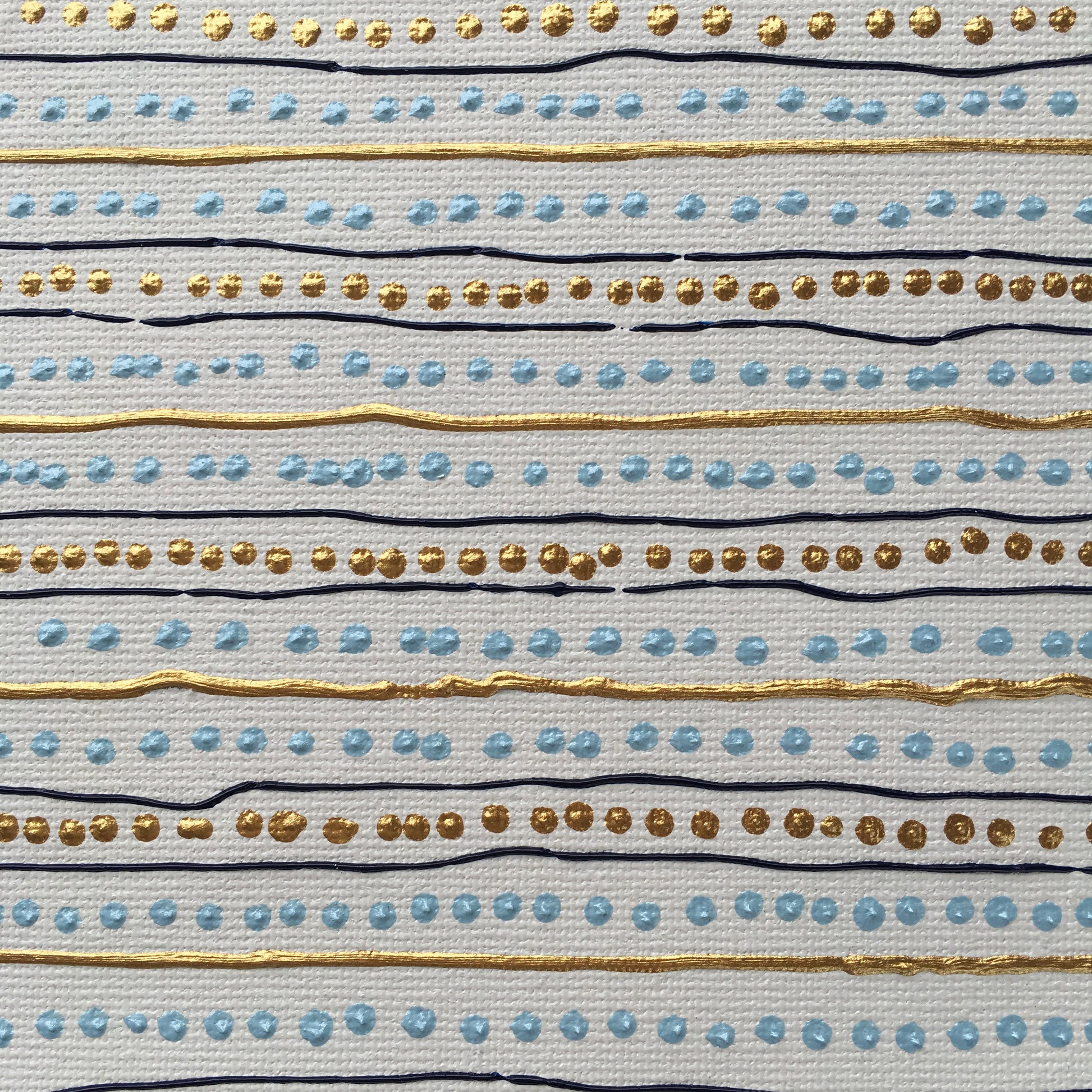 Hand-painted canvas stitched to cotton paper measures 7 by 5 inches.